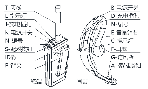 無(wú)線通話系統(tǒng)的按鍵介紹: