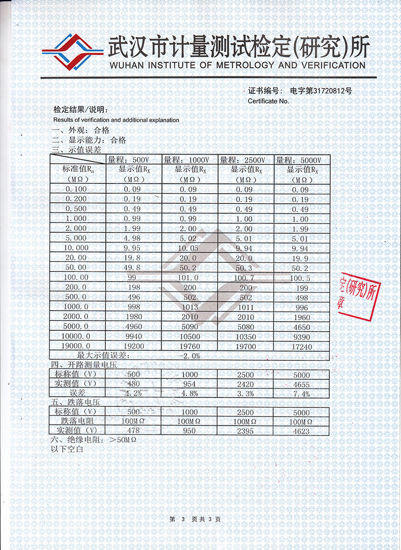 有效測量范圍(MΩ) 準(zhǔn)確度等級 |